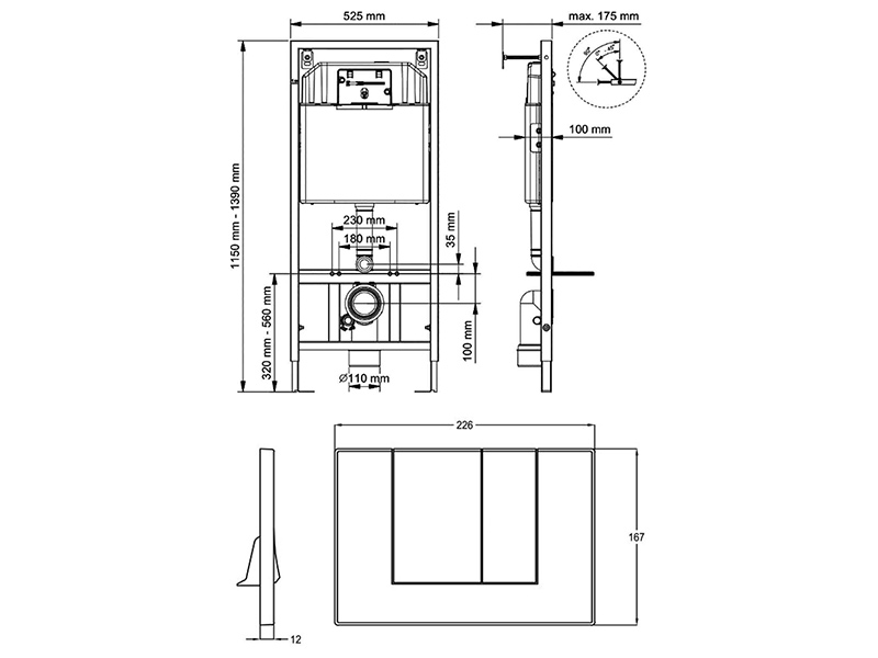 - Подвесные штанги для унитаза выдерживают нагрузку до 400 кг. (Регулируется для осевого расстояния 18 или 23 см унитазов)