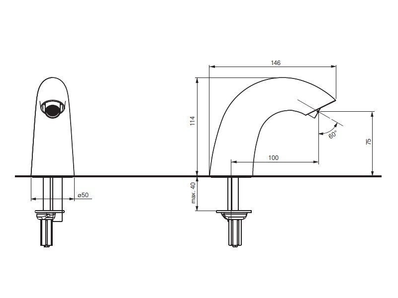 PUBLIC Излив сенсорный энергонезависимый для термостата 3 или 4л/мин, размер 5x14.6x11.4Н, цвет хром
