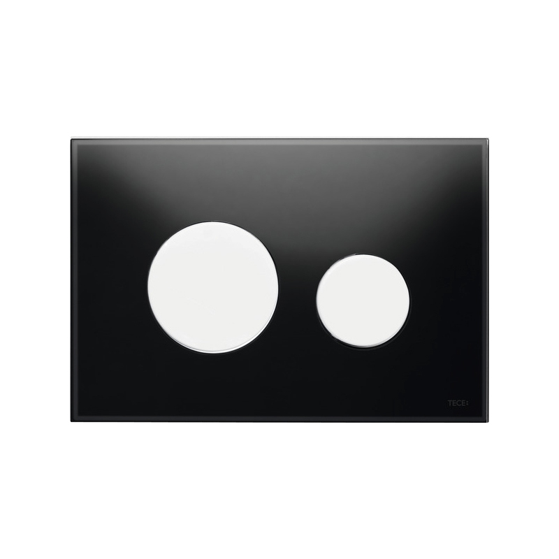 Стеклянная панель смыва для унитаза TECEloop 9240654, стекло черное, клавиши белые.