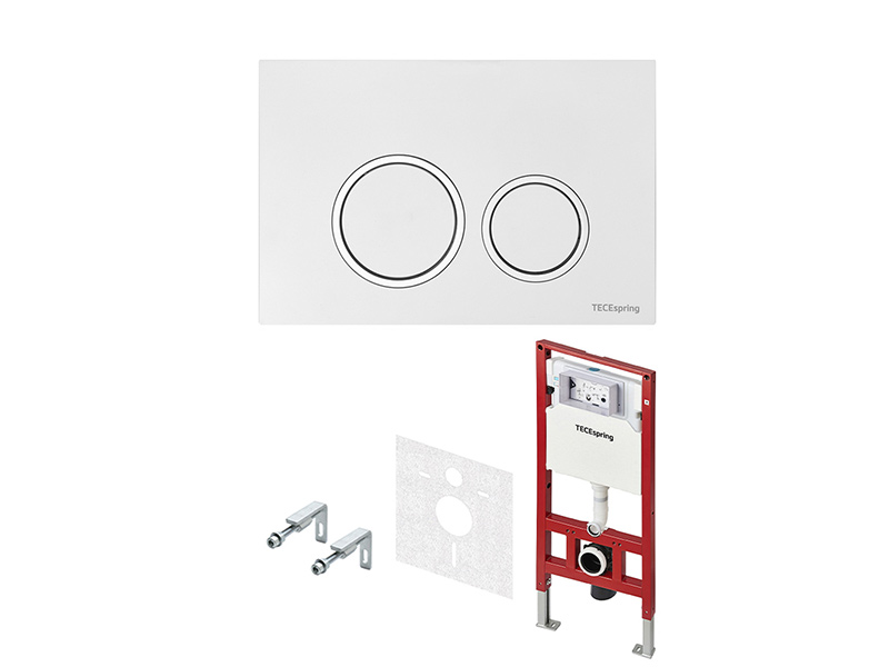 TECEspring R K955103 Комплект с белой глянцевой панелью с хромированным контуром клавиш, клавиши круглые. Новый универсальный модуль TECEspring обладает расширенными возможностями настройки и подключения, совместим с любыми моделями подвесных унитазов.
