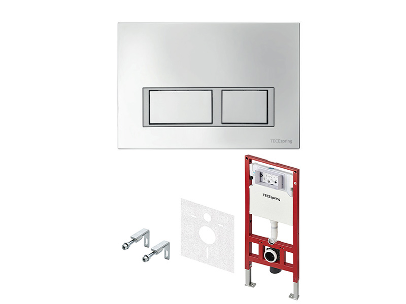 TECEspring R K955201 Комплект с хромированной глянцевой панелью с хромированным контуром клавиш, клавиши квадратные. Новый универсальный модуль TECEspring обладает расширенными возможностями настройки и подключения, совместим с любыми моделями подвесных унитазов.