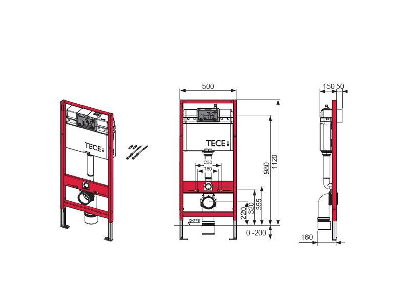 TECE 9400412 Комплект для установки подвесного унитазаза с панелью смыва TECEnow, цвет хром глянцевый. Застенный модуль TECEbase, высота 1120 мм, крепление перед стеной или в углу.