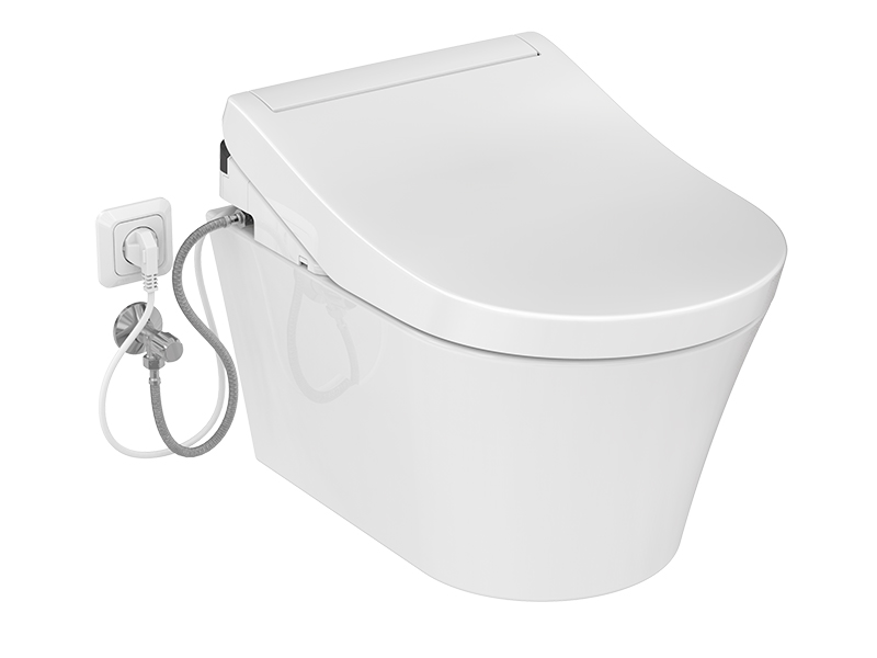 Комплект GP подвесного безободкового унитаза с крышкой биде WASHLET RG Lite с открытым подключением, цвет белый.