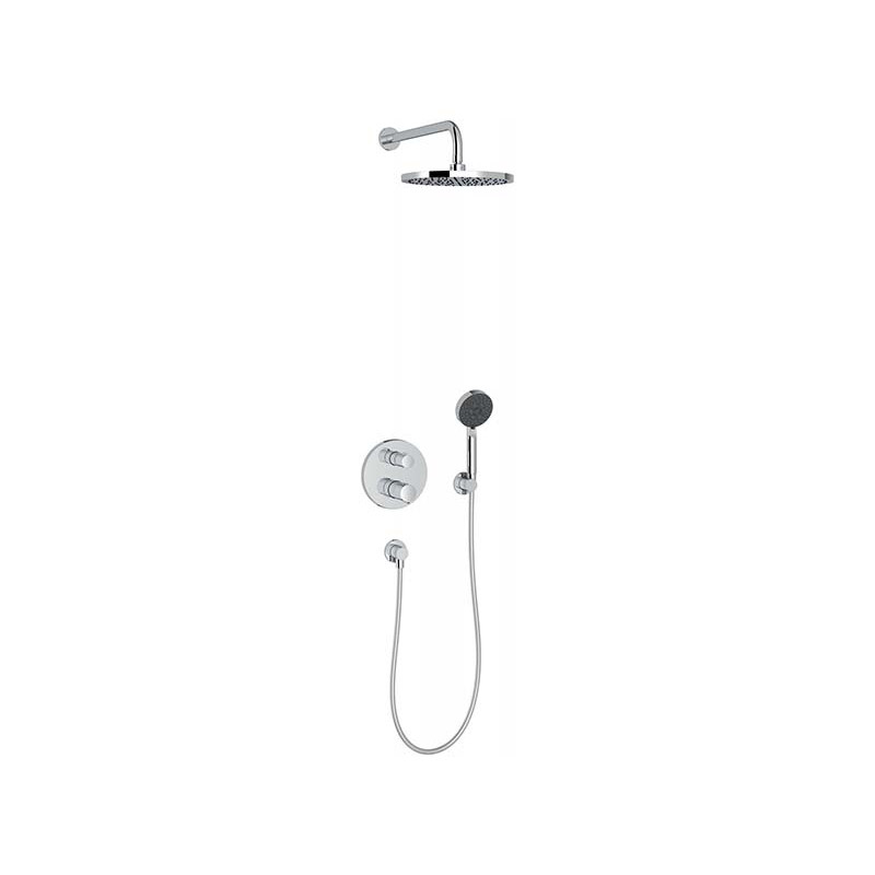 Смеситель скрытого монтажа с термостатом для душа E30758-CP MODULO JACOB DELAFON - это настоящая находка для тех, кто хочет собрать комплект встроенного душа, ничего не позабыв. Благодаря комплекту "Все в одном" у вас есть все необходимое для установки функционального встроенного душа. В комплект входит: смеситель скрытого монтажа с термостатом с регулировочными ручками, верхний душ, ручной душ, гибкий шланг с защитой от перекручивания, держатель для душа, внутренний блок Modulo. Комплект выполнен из высокопрочной латуни и представлен в цвете хром. Установка комплекта очень проста благодаря встраиваемому корпусу, который подходит для установки разных типов. Направляющая система скрытого монтажа Modulo обеспечивает легкость и безопасность сборки. Диаметр верхнего круглого душа равный 25 см создает широкий поток воды. Круглая ручная лейка диаметром 10 см имеет 5 режимов работы, чтобы удовлетворить потребностям самого взыскательного пользователя. Наличие термостатического смесителя позволяет поддерживать постоянную температуру воды до 50°C и контролировать ее напор. Он обладает мгновенной блокировкой подачи воды в случае отключения холодной воды, что исключает риск получения ожога и обеспечивает безопасность использования. Наличие индикации температуры комфорта – 38 °C облегчает ежедневное использование. Скрытый монтаж комплекта E30758-CP MODULO JACOB DELAFON придаёт утонченность и изысканность ванной комнате, даря ощущение роскоши и комфорта.