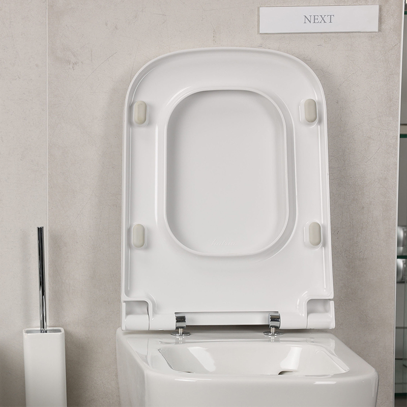 Комплект Унитаз приставной безободковый HATRIA NEXT Y3AY01, в комплекте с креплениями и крышкой сидением с микролифтом Y1F301 , размер 36х56 см, цвет белый. Для установки с бачком скрытого монтажа.