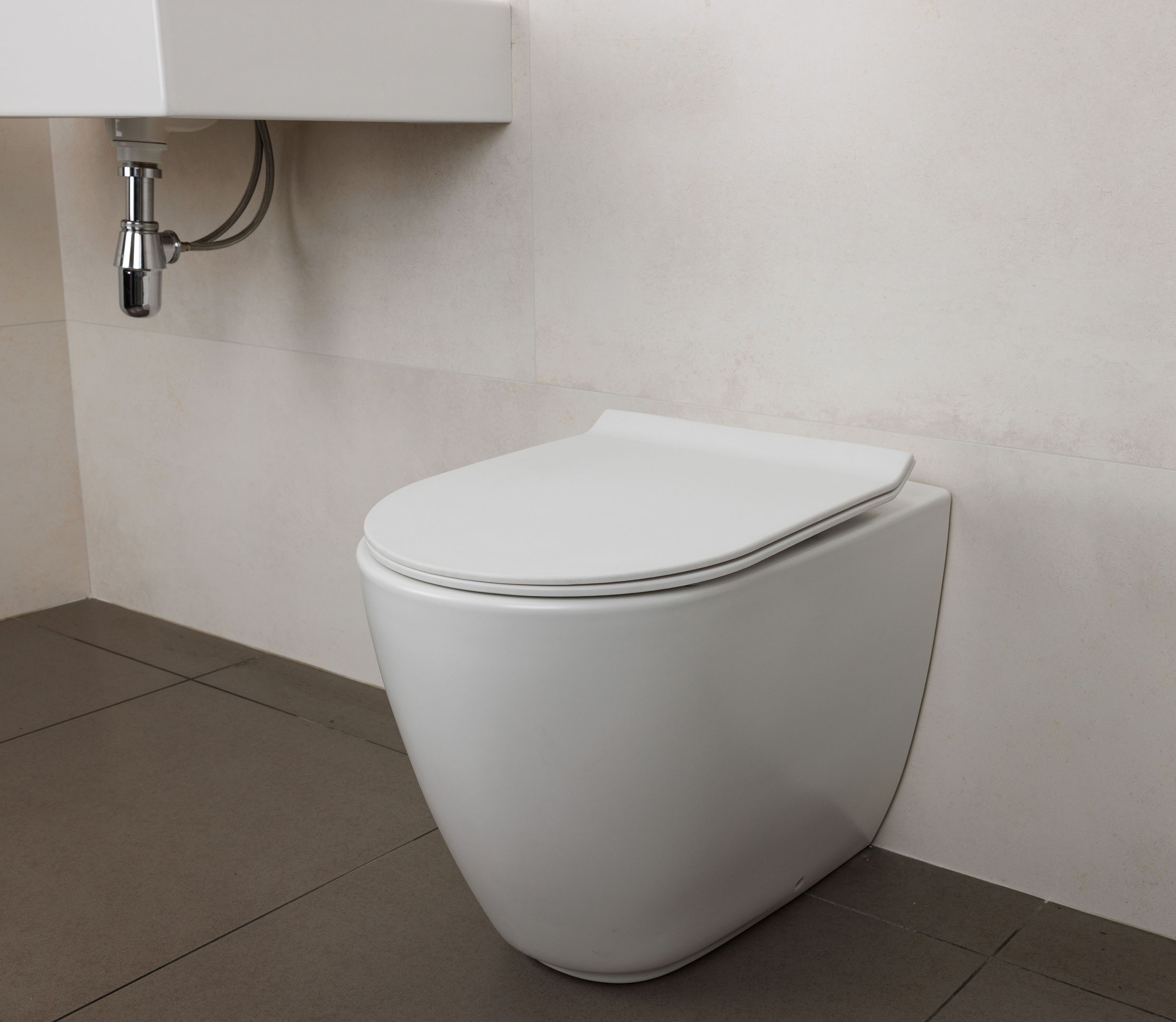 Унитаз приставной безободковый HATRIA FUSION A0Y1ZA25 с универсальным сливом, размер 35.5х54 см, цвет белый матовый. Крепления и крышка сидение с микролифтом в комплекте. Может комплектоваться как бачком арт. Y0MK01, так и бачком скрытого монтажа.