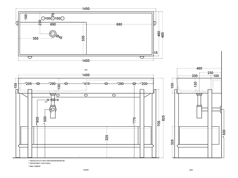 CIELO PNST NI PLINIO Консоль для раковины,цвет Ninfea. Обязательная конструкция с раковиной и столешницей или ящиком.