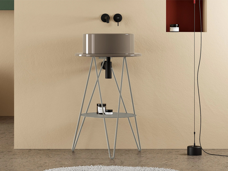 Scarabeo GUSTAV 5060 Консоль под раковину с отверстием под раковину посередине. Современная консоль с возможностью индивидуального оформления. Она изготовлена из металла, имеет легкую и воздушную конструкцию с двумя круглыми поверхностями для размещения повседневных предметов. GUSTAV предлагается в широком диапазоне цветов, те же самые, которые Scarabeo использует для керамики. Размеры: D52x 76h см. Цвет белый.