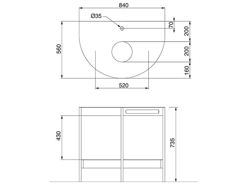 | Форма | Полукруглая |