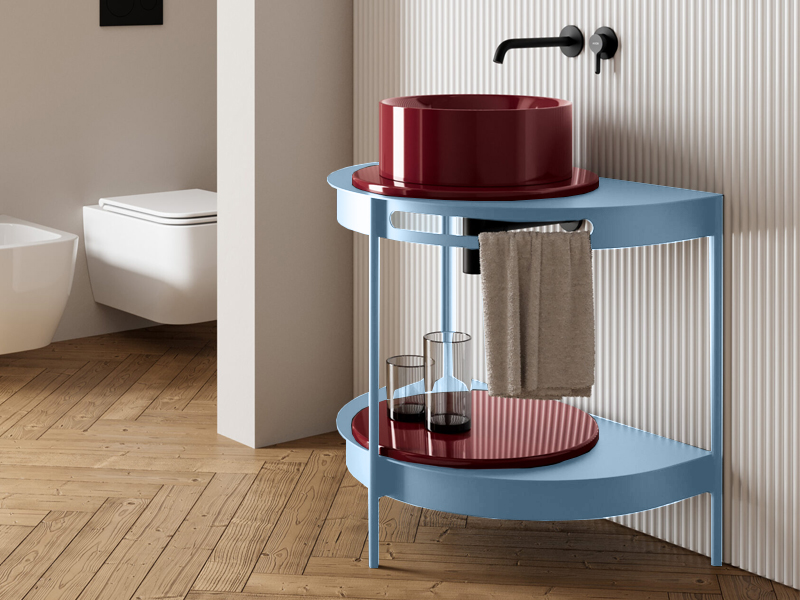 Scarabeo SESTO 5062. Консоль для ванной комнаты с простым минималистичным дизайном, который чрезвычайно функционален и имеет полукруглую форму. Металлическая конструкция со встроенным полотенцесушителем и две поверхности: одна для умывальника и одна в качестве столешницы, как место для хранения. Поверхности можно использовать без столешницы или с круглыми керамическими столешницами, доступными во всех цветах сантехники Scarabeo. Поверхность как глянцевая, так и матовая, позволяющая создавать индивидуальные композиции с желаемыми цветами. SESTO–это очаровательное решение, которое добавляет нотку элегантности в любую ванную комнату в современном стиле. Размеры: 84x56x7,5h см. Цвет Matt Air.