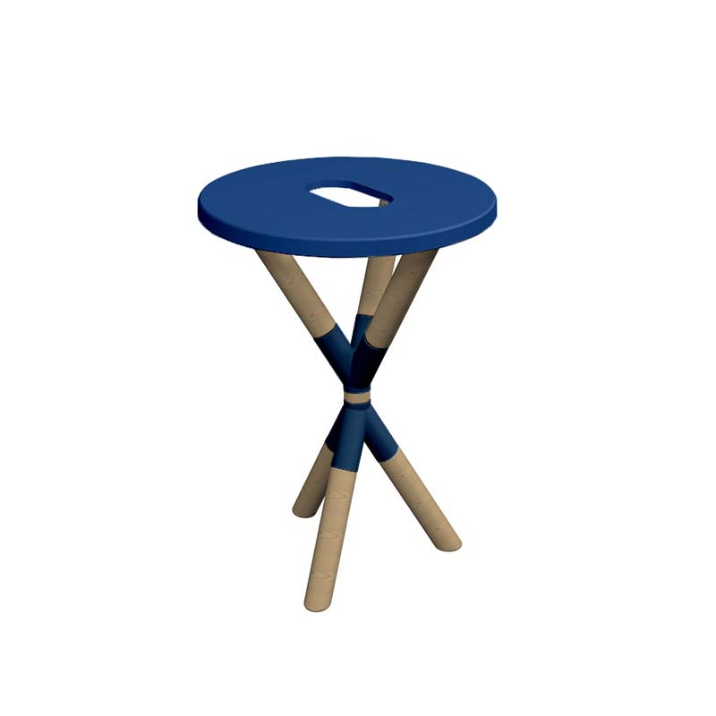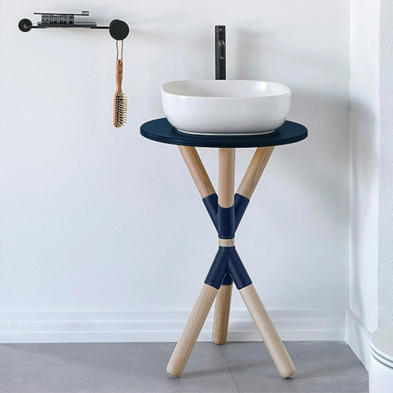 SCARABEO CROSS 2501 Консоль для раковины круглая с отверстием. Деревянные ножки в цвете светлого дерева, крестовина и столешница из керамики цвета Ocean. Размеры: Ø52 x H76 Cm.