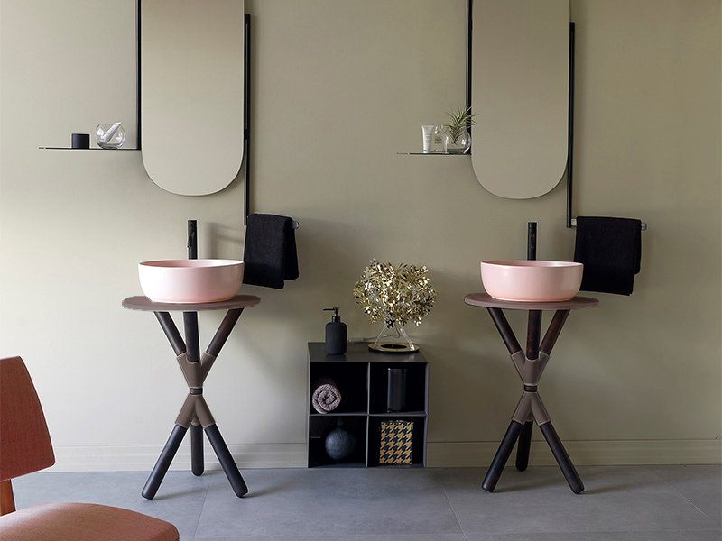 Консоль выполнена в компактных размерах: диаметр 52 см и высота 76 см. Она идеально подходит для небольших ванных комнат, где каждый сантиметр пространства имеет значение.