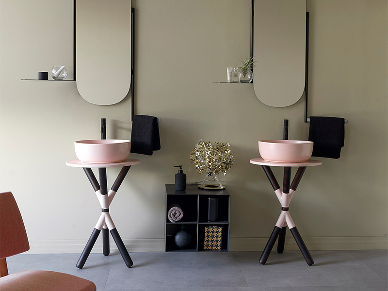 Консоль для раковины Scarabeo Cross 2502/99/54 уникальна и своими деревянными ножками, окрашенными в цвет темного дерева. Такое сочетание придает изделию особую изящность и шарм. Ножки отлично сочетаются со столешницей и крестовиной, выполненными из керамики розового цвета. Эта расцветка станет неотъемлемой частью вашего уникального интерьера.
