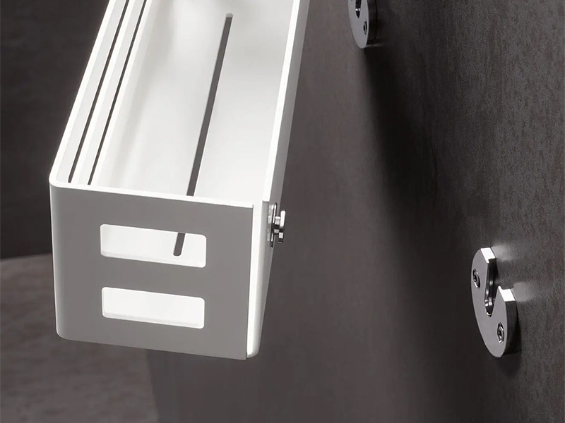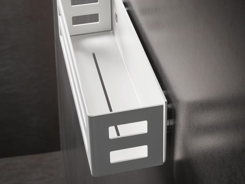 KEUCO 249545 Корзинка для душа. Настенный монтаж, съёмная, со скрытым креплением, со сливными прорезями. Размеры: 32х9.3x9hсм. Цвет черный матовый.