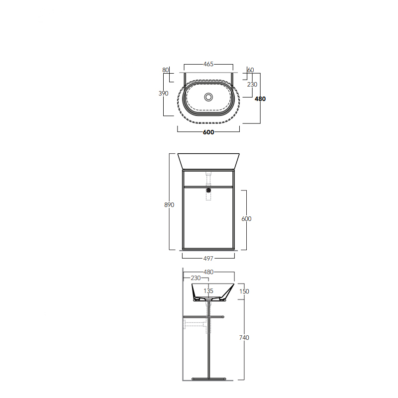 Напольная металлическая структура SIMAS WAVE WASA02 для раковины WA 02, размер 50x40x75 см, цвет черный матовый.
