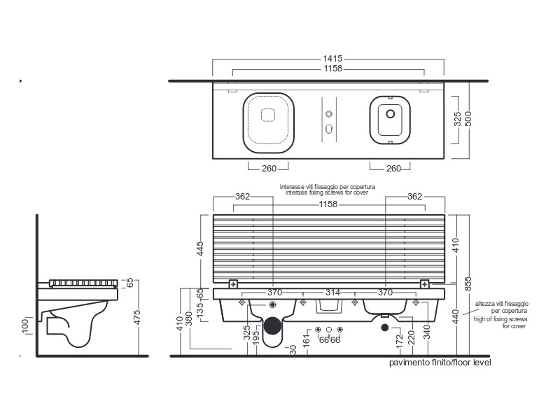 Многофункциональный модуль с унитазом и биде HATRIA G-FULL YXJT01 с унитазом слева без крышки, размер 140x50 см, цвет белый. В комплекте со смесителем для биде, кнопкой слива и крышкой-сидением с микролифтом для унитаза. Возможна комплектация с крышкой цвета дерева или белого цвета. Возможен монтаж к стене, в нишу, в правый или левый угол. Монтаж на специальную инсталляцию для стен из кирпича, или на специальный кронштейн для стен из гипсокартона. Также дополнительно необходимо приобрести бачок скрытого монтажа Geberit “Sigma 8”. Возможна комплектация выдвижным ящиком белого цвета. Дополнительно приобретаются также сифон и донный клапан для биде.
