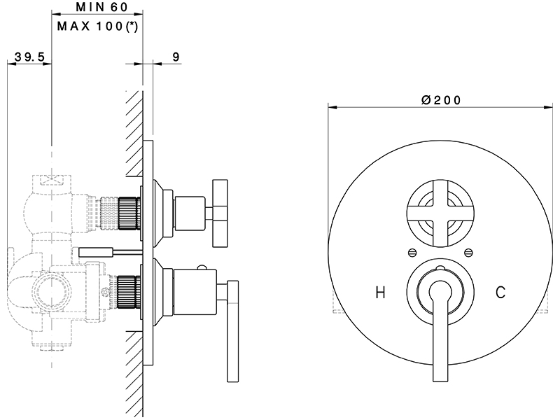 Наружная часть термостатического смесителя NICOLAZZI MONTE CROCE 4909CR27, с запорным вентилем, цвет хром. Встроенная частть арт. 4910 приобретается отдельно.