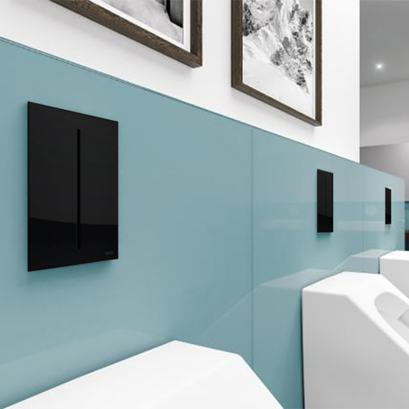 TECEfilo 9242062 Электронная панель смыва писсуара,стекло черное, питание от сети 230 В. Комплект для монтажа бесконтактного инфракрасного смывного устройства, совместим с корпусом U 2 сливного клапана писсуара TECE; минимальное рабочее давление в системе — 0,5 бар; возможность настройки времени смыва, паузы для экономии воды, установки крышки писсуара, режима чистки, предварительного и гигиенического смывов.