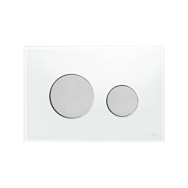 Стеклянная панель смыва для унитаза TECEloop 9240659, стекло белое, клавиши хром матовый.
