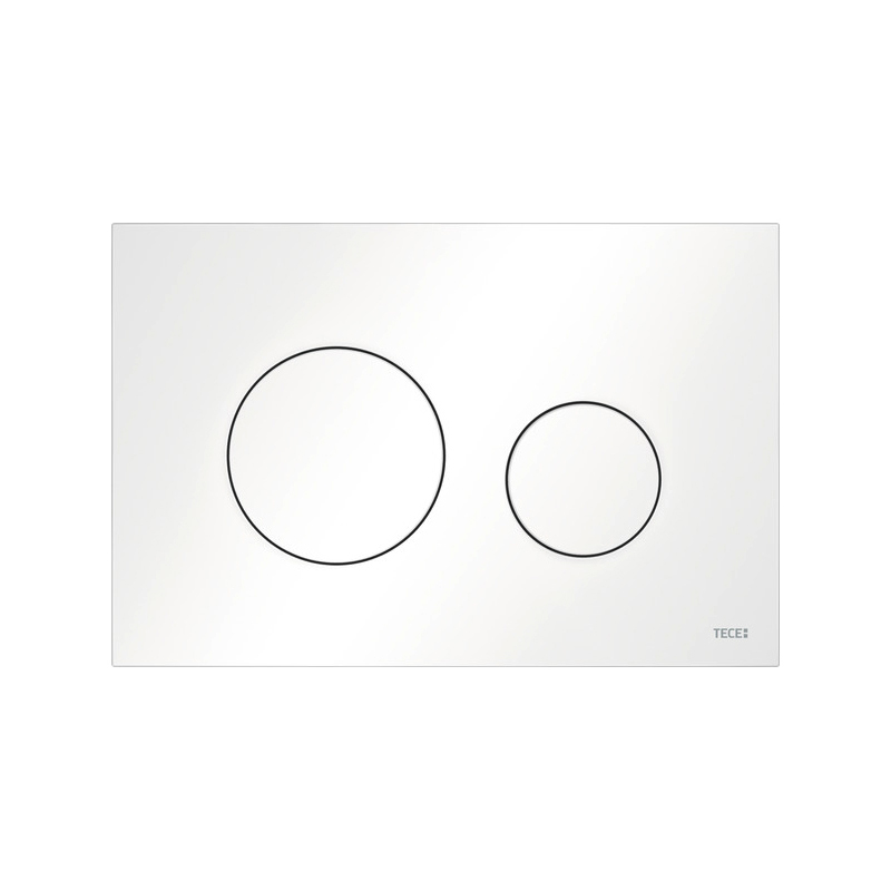 TECE 9240926 Пластиковая панель смыва унитаза TECEloop для системы двойного смыва. Панель смыва для смывных бачков TECE, фронтальная или верхняя установка. Очень плоская пластиковая панель смыва, клавиши с резиновыми накладками, толкателями и крепежными элементами. Подходит для монтажа на уровне стены вместе с монтажной рамкой унитаза и дистанционной рамкой. Совместимо с контейнером для гигиенических таблеток. Цвет белый матовый.