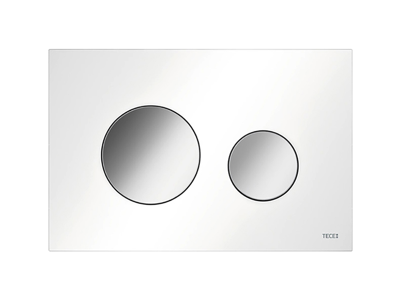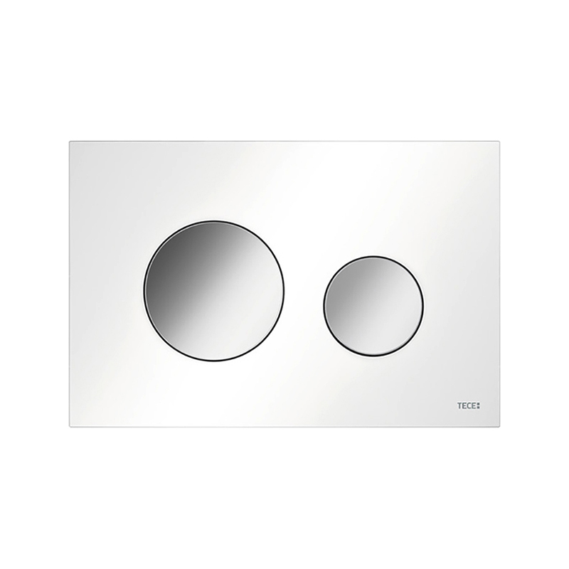 TECE 9240927 Пластиковая панель смыва унитаза TECEloop для системы двойного смыва. Фронтальная или верхняя установка. Очень плоская пластиковая панель смыва, клавиши с резиновыми накладками, толкателями и крепежными элементами. Подходит для монтажа на уровне стены вместе с монтажной рамкой унитаза и дистанционной рамкой. Совместимо с контейнером для гигиенических таблеток. Цвет белый, цвет клавиш хром глянцевый.