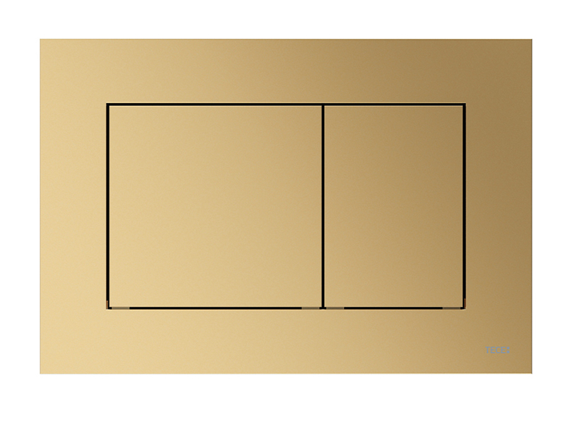 установка. Плоская пластиковая панель смыва,цвета латунь металлик, прямоугольные клавиши с резиновыми накладками с обеих сторон. В комплект входят толкатели и крепежные элементы. Подходит для установки на уровне стены вместе с монтажной рамкой унитаза и дистанционной рамкой TECE. Совместима с контейнером для гигиенических таблеток. Размеры (ш x в x г): 220 x 150 x 5 мм. Минимальная толщина конструкции для кирпичной стены — 26 мм.
