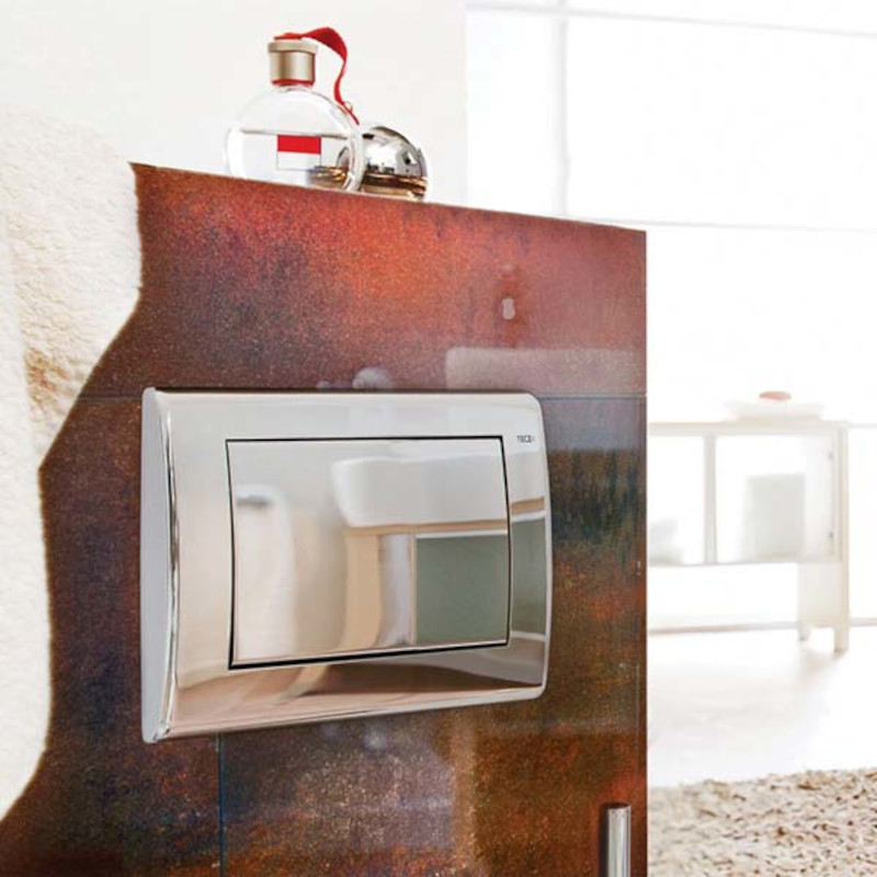 TECEplanus 9240311 Панель смыва унитаза для одинарной системы смыва. Панель смыва из нержавеющей стали для смывных бачков TECE, фронтальная или верхняя установка, фиксация с помощью потайных винтов. Упорное кольцо с резиновыми накладками с обеих сторон. В комплект входит толкатель и комплект крепежных элементов. Совместима с контейнером для гигиенических таблеток.