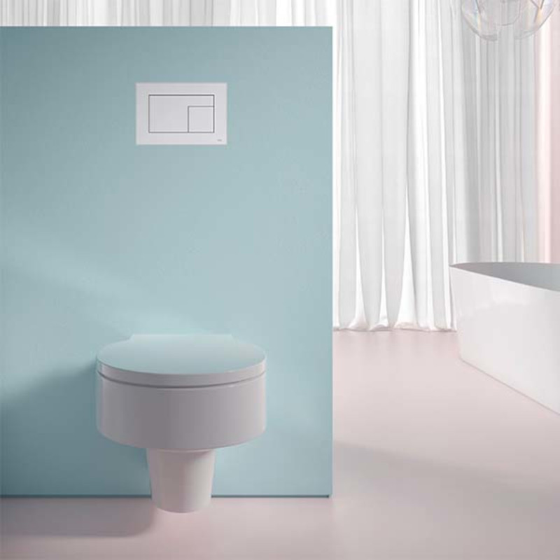 толкателями и крепежные элементами. Подходит для монтажа на уровне стены вместе с монтажной рамкой унитаза и дистанционной рамкой. Совместимо с контейнером для гигиенических таблеток.
