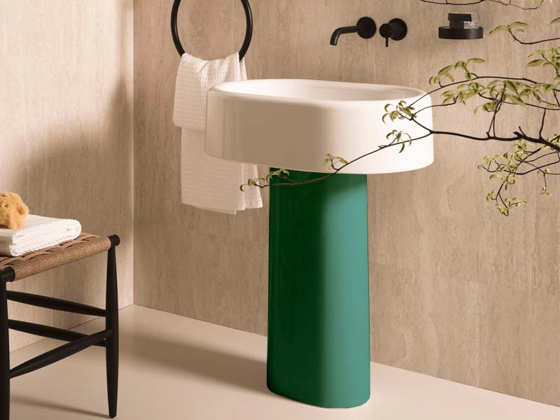 CIELO ITACA ITCOLP Пьедестал для раковины ITLAO со сливом в стену. Крепления в комплекте. Размеры: 21x30x67h см. Цвет Smeraldo.