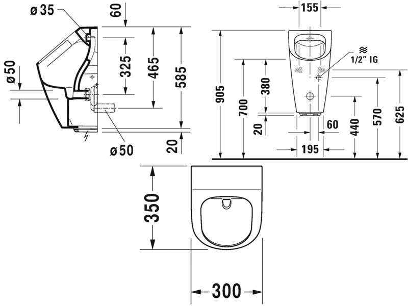 ME by STARCK Писсуар Rimless белый без мушки, без крышки, электронный от сети