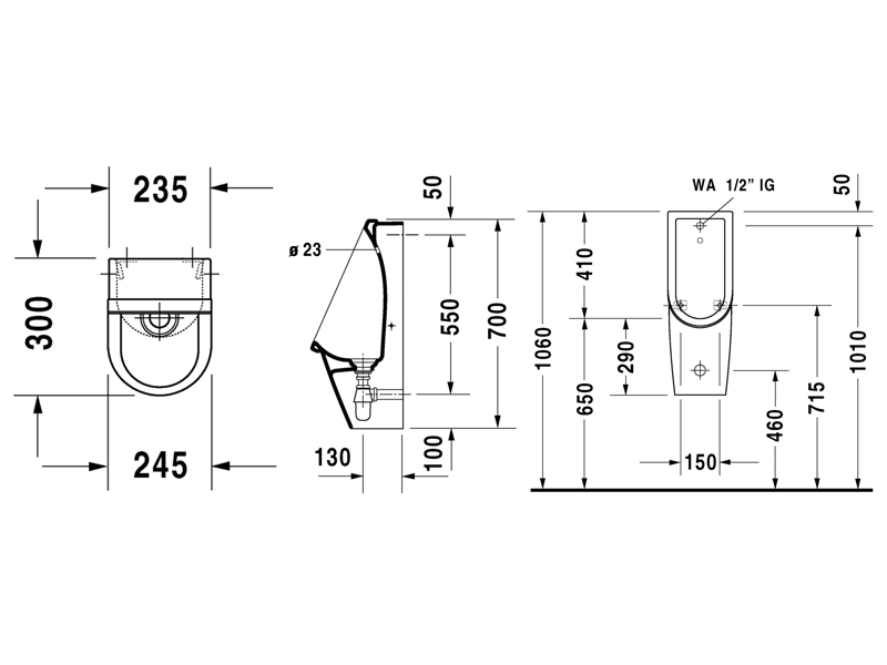 STARCK 3 Писсуар, подача воды сзади, размер 24.5х30 см, цвет белый