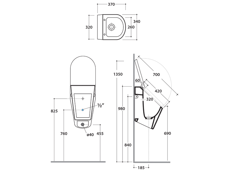 FORTY3 Писсуар подвесной с отверстиями под крышку, цвет белый
