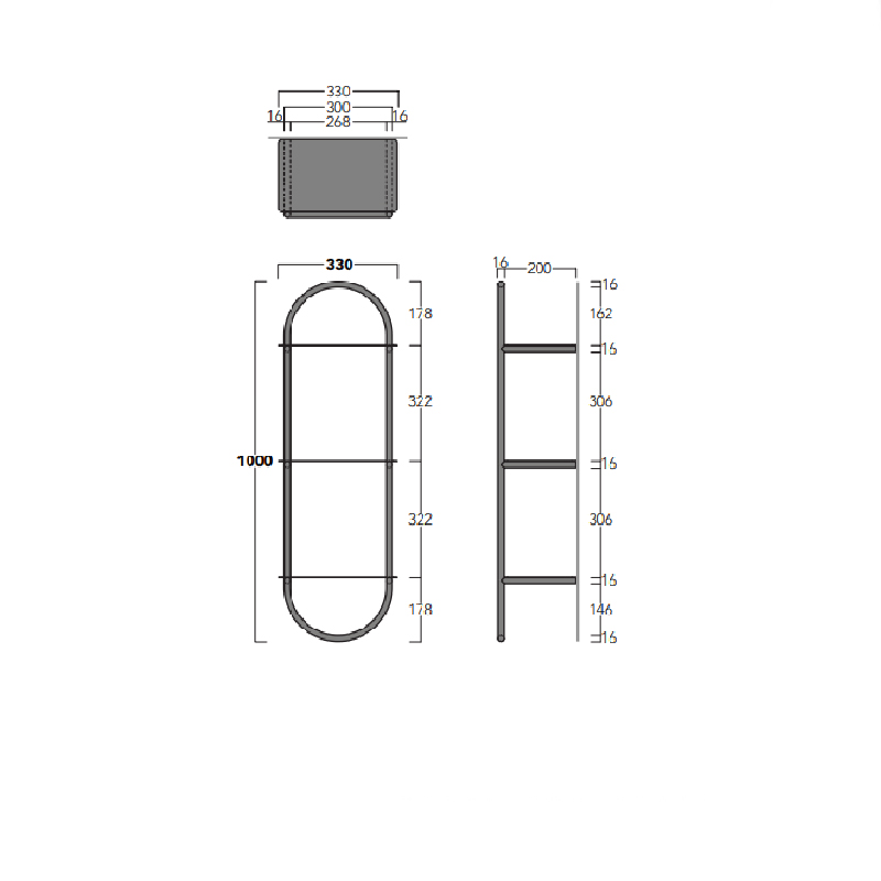 Подвесная овальная колонна с полками SIMAS WAVE WASS05, размер 32x21x100 см, цвет черный матовый.