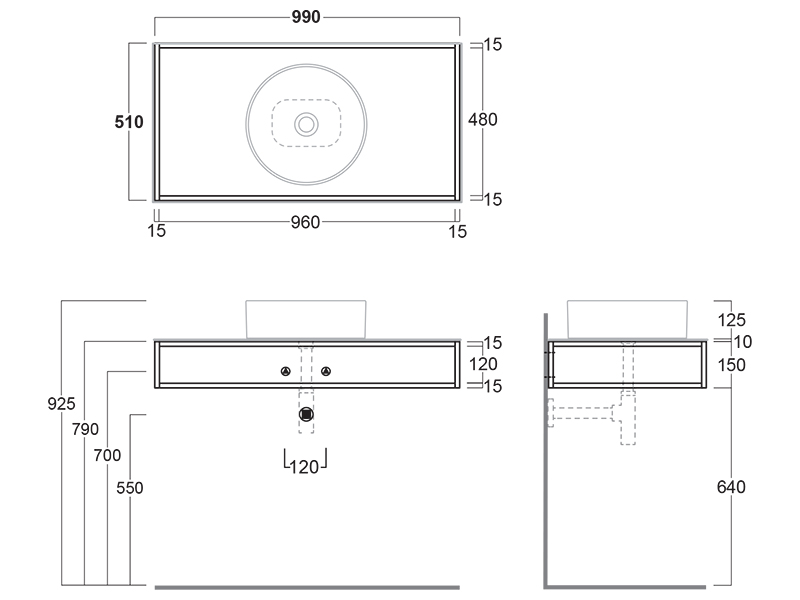 Подвесная структура SIMAS FOLIO FOSS100 nero matt для керамической столешницы FO10, размер 100x51x15 см, цвет черный матовый.