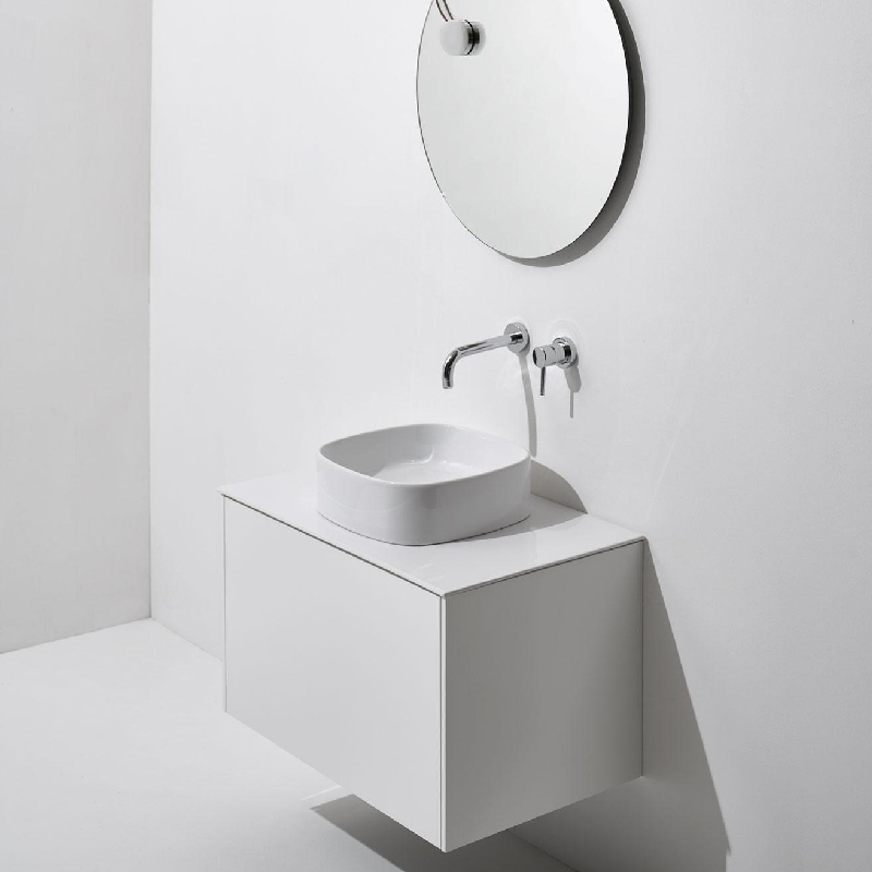 Подвесная тумба SIMAS FOLIO FOM80 bia/bia matt для керамической столешницы FO08. C белым матовым ящиком с системой открывания push to open. Сифон и крепежи включены, цвет белый матовый. Керамическая столешница приобретается отдельно.