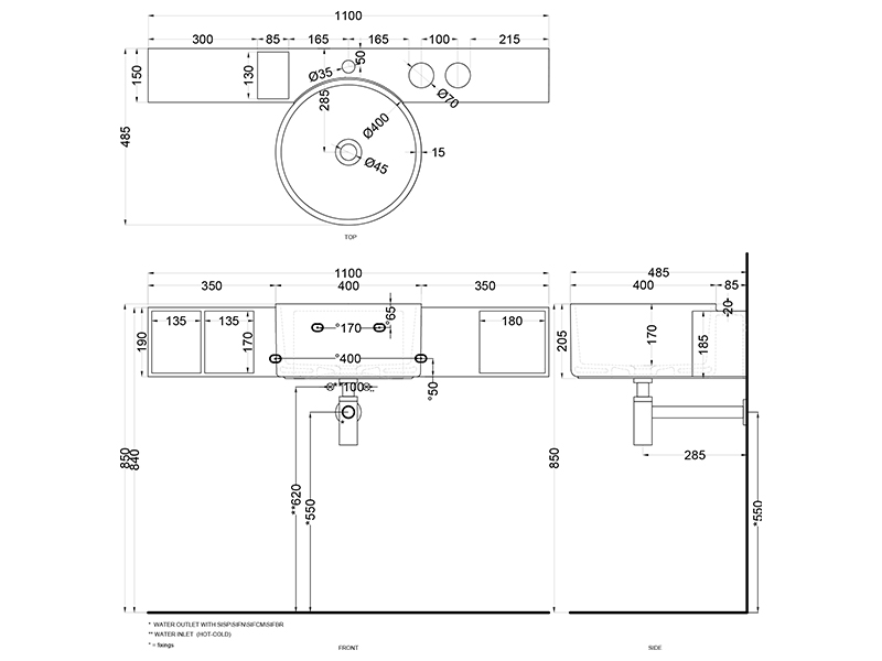 CIELO SELLA SEPO Подвесной модуль - полочки для раковины из композитного материала Living Tec с одним отверстием под смеситель. Продаются в обязательном комплекте с раквиной SELS или SELSSF. Размеры:110 x 15