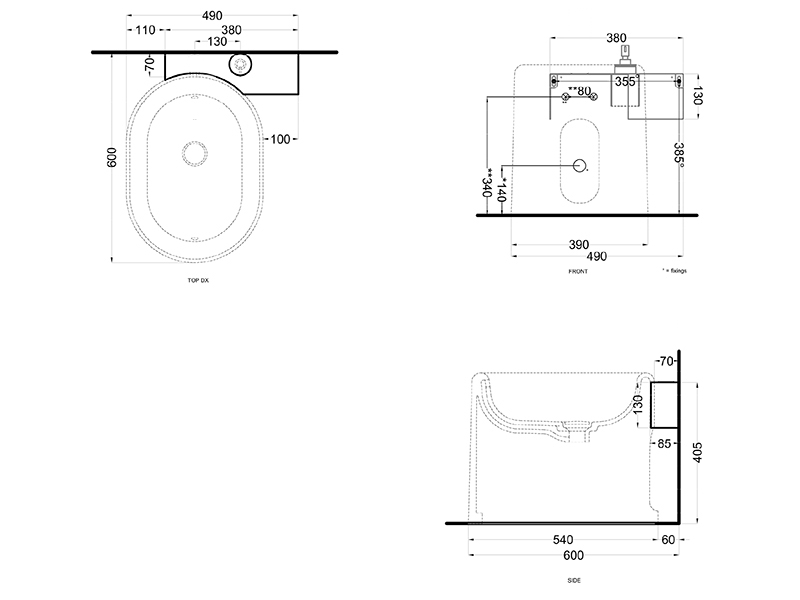 ITACA Полка для напольного биде подвесная без отв.под смеситель c отв.под диспенсер справа, цвет Talpa
