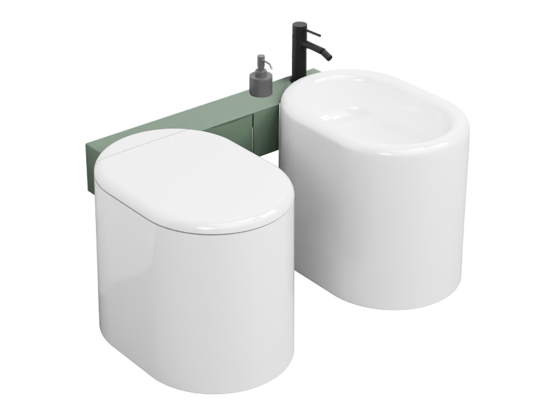 ITACA Полка для напольного унитаза и биде подвесная, интегрированная, правосторонняя с 1 отв.под смеситель и отв.под диспенсер, цвет Alga