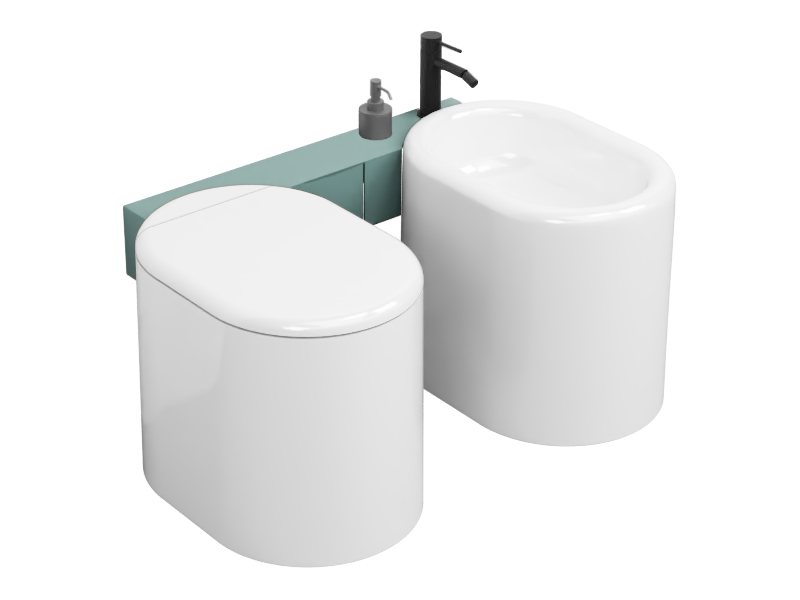 ITACA Полка для напольного унитаза и биде подвесная, интегрированная, правосторонняя с 1 отв.под смеситель и отв.под диспенсер, цвет Smeraldo