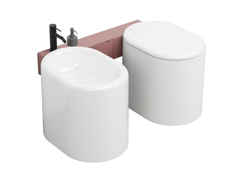 ITACA Полка для напольного унитаза и биде подвесная, интегрированная, левосторонняя с 1 отв.под смеситель и отв.под диспенсер, цвет Corallo
