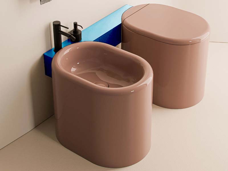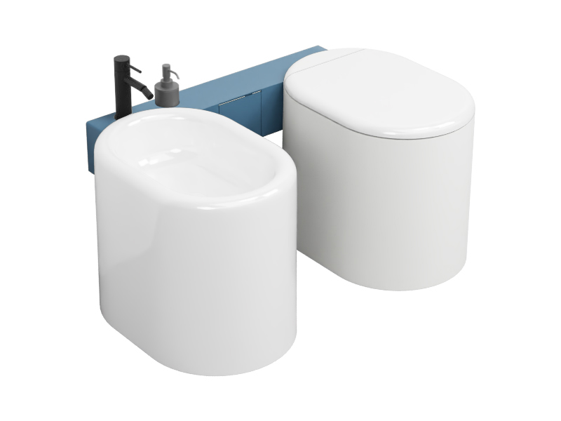 ITACA Полка для напольного унитаза и биде подвесная, интегрированная, левосторонняя с 1 отв.под смеситель и отв.под диспенсер, цвет Oltremare