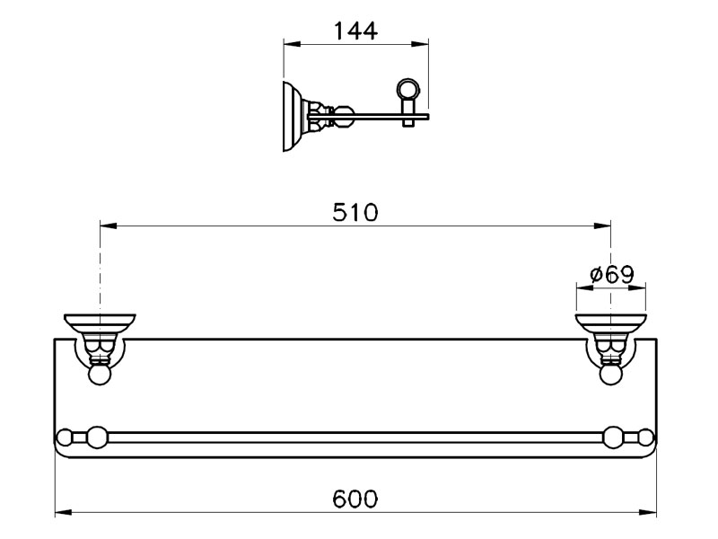CLASSICA Полочка подвесная 60 см стеклянная с ограничителем, цвет bronzato
