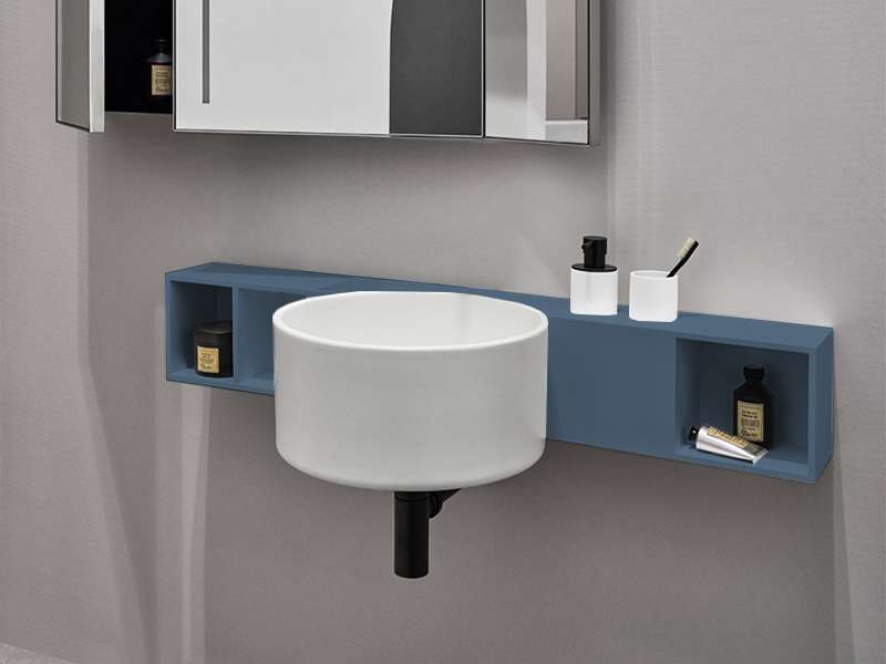 CIELO SELLA SEPOT Подвесной модуль - полки под раковину с одним отверстием под смеситель из материала Fenix. Размеры: 110x15x19 h см. Продается обязательно с раковинами SELS или SELSSF. Цвет Cobalto.