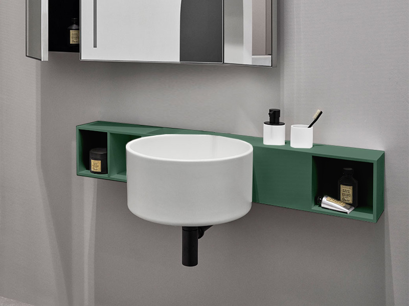 CIELO SELLA SEPOT Подвесной модуль - полки под раковину с одним отверстием под смеситель из материала Fenix. Размеры: 110x15x19 h см. Продается обязательно с раковинами SELS или SELSSF. Цвет Felce.