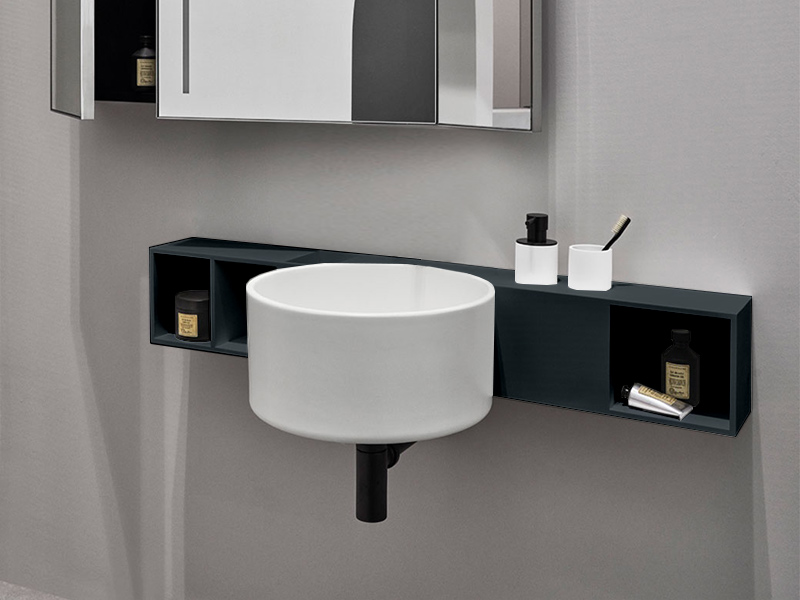 CIELO SELLA SEPOT Подвесной модуль - полки под раковину с одним отверстием под смеситель из материала Fenix. Размеры: 110x15x19 h см. Продается обязательно с раковинами SELS или SELSSF. Цвет Grafite.
