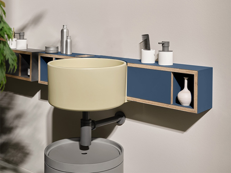 CIELO SELLA SEPOT Подвесной модуль - полки под раковину без отверстия под смеситель из материала Fenix. Размеры: 110x15x19 h см. Продается обязательно с раковинами SELS или SELSSF. Цвет Cobalto.
