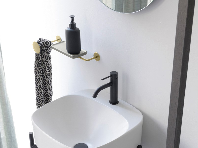 LAILA Полотенцедержатель из металла Gold с керамической полкой в цвете Pearl