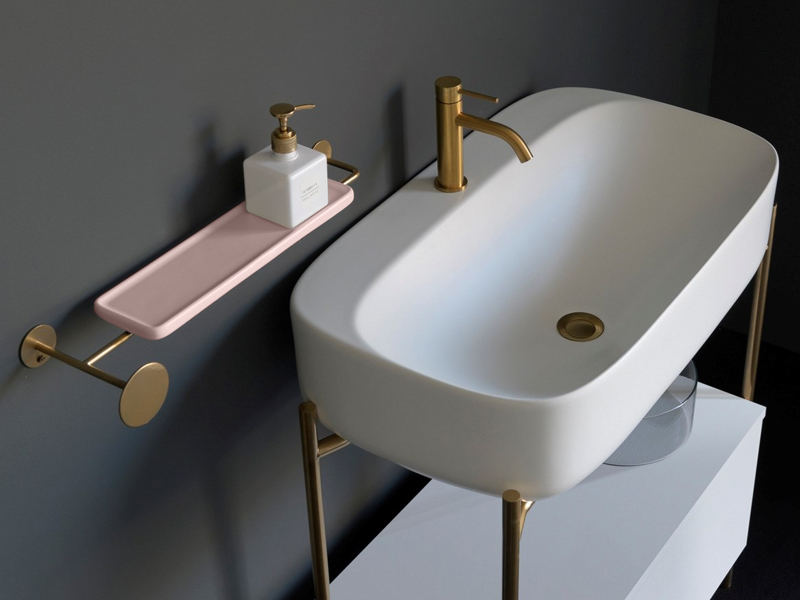 LAILA Полотенцедержатель из металла Gold с керамической полкой в цвете Antique Pink