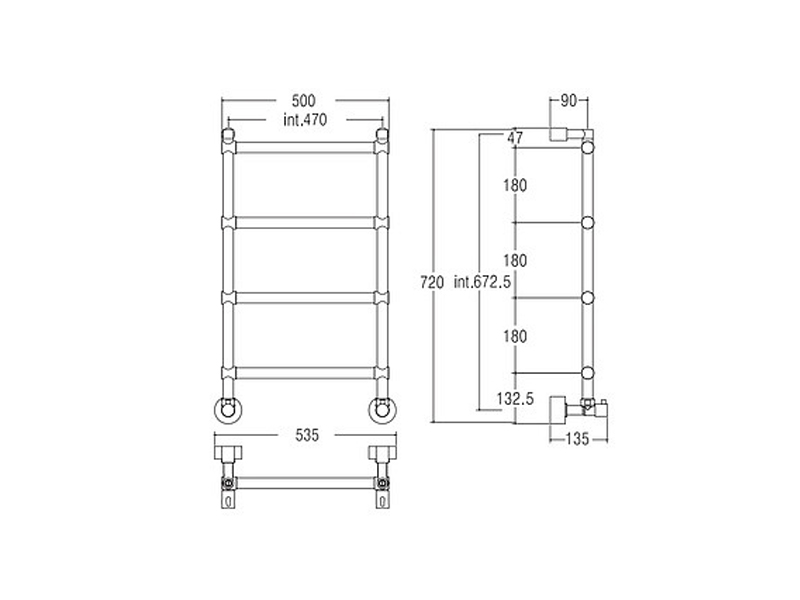 Полотенцесушитель модульный водяной MARGAROLI SOLE MA0442TS0401BR, лесенка 4 ступеньки, для подключения к системе ГВС или отоплению, INT 460, размер 50x42 см, цвет бронза.