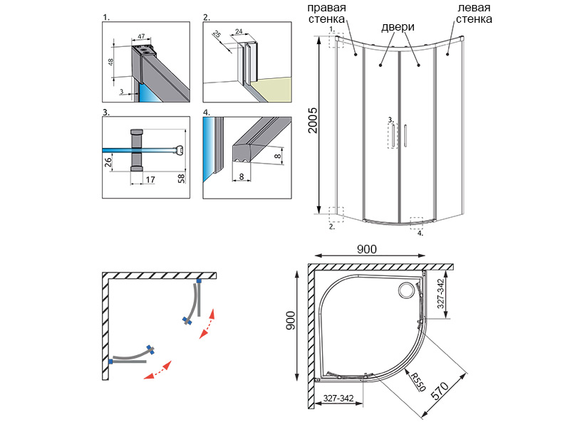 - монтаж без поддона: можно установить как на поддон, так и на пол;